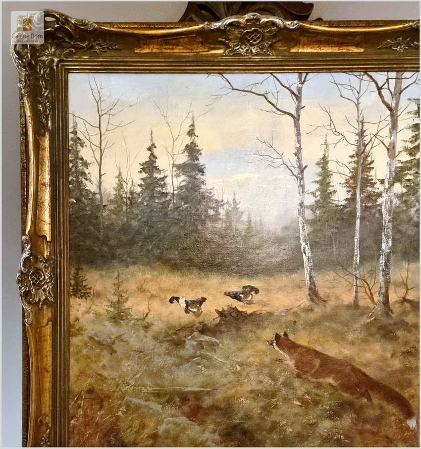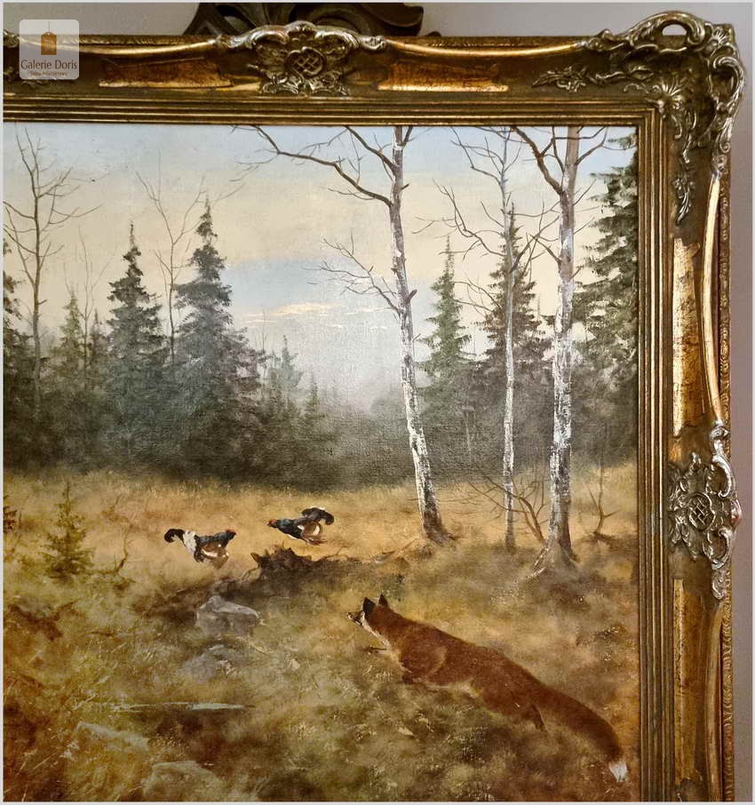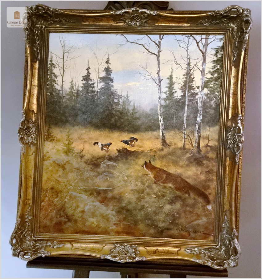 Super Malarstwo! Lis polujący na bażanty - oryg. Georg Majewicz (1897-1965)