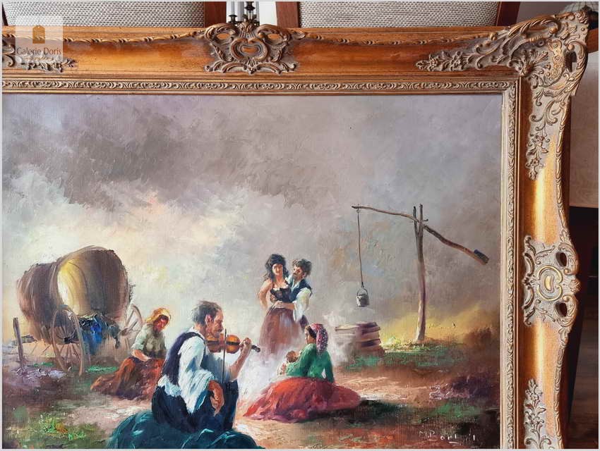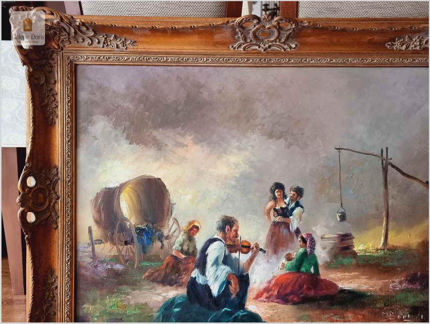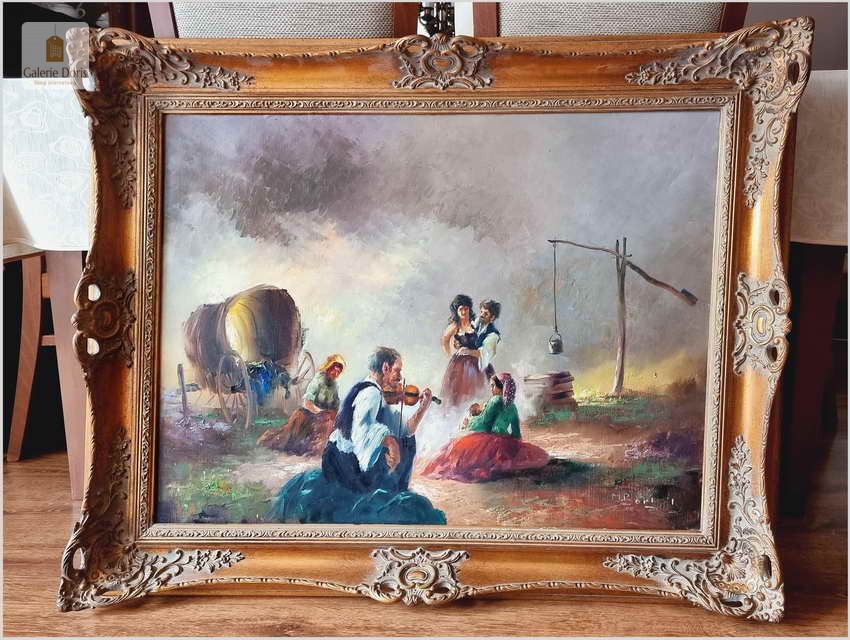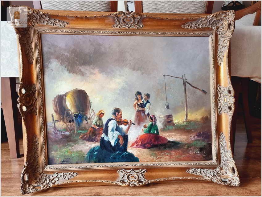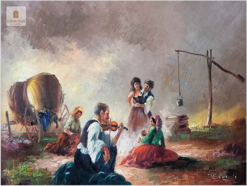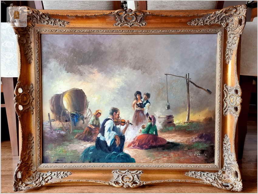 Super malarstwo olejne! W cygańskim obozowisku - Michael Borbely *1923