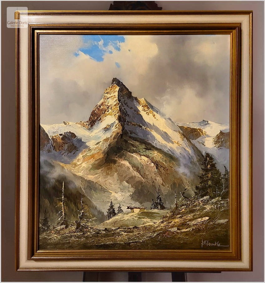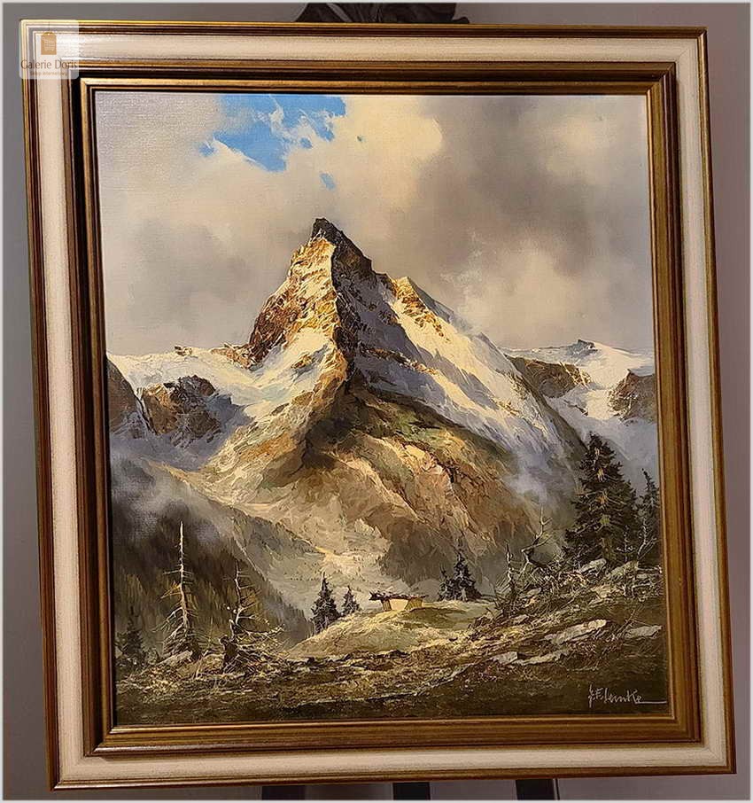 Super obraz olejny! Matterhorn w Szwajcarii - J.E. Lemke *1916
