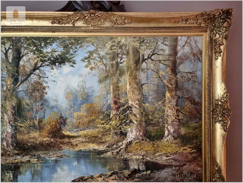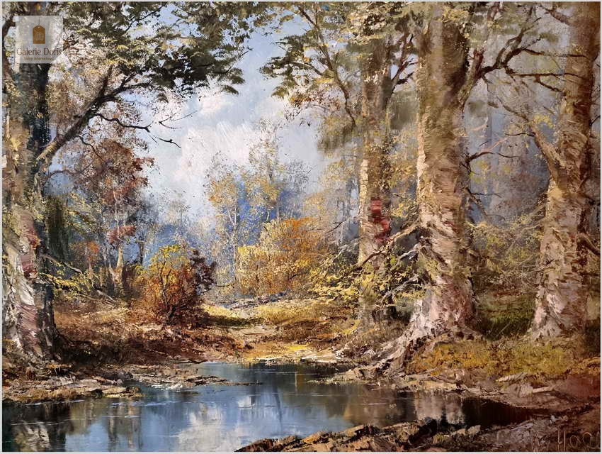 Chociaż sposobów na dekorację domowych ścian mamy obecnie całe mnóstwo, pomimo szybko zachodzących zmian w aranżacyjnych trendach, symbolem dobrego gustu i elegancji wciąż pozostają obrazy olejne. Pejzaże są tu najlepszym przykładem. Umiejętnie dobrane, będą zdobić ściany pomieszczeń o dowolnym przeznaczeniu i utrzymanych w dowolnym stylu. Ten znakomity pejzaż odznacza się delikatnie prowadzonymi liniami pędzla i szpachli, wysmakowaną grą światłocieni oraz widoczną strukturą farby.
