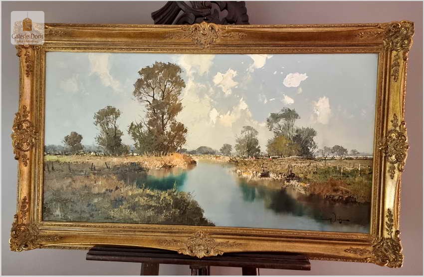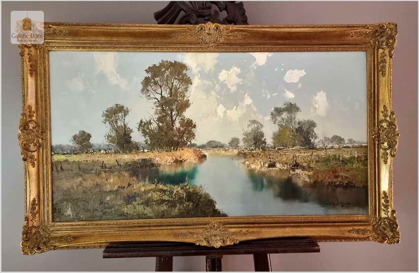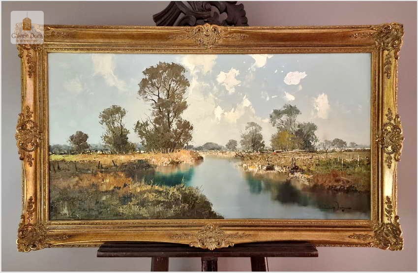 Polecamy nastrojowy pejzaż na płótnie o formacie panoramy. Umiejętnie powieszony, będzie zdobić ściany pomieszczeń o dowolnym przeznaczeniu. Obraz potrafi "ożywić" nawet najbardziej nudne i pospolite wnętrze, nadając mu niepowtarzalnego charakteru. Malarz ukazał nam Worpswede to krajobraz zróżnicowany i niezwykle atrakcyjny. Charakteryzuje się silnie rozległymi, płaskimi łąkami i polami oraz rzekami, kanałami, rowami i potokami. W różnych miejscach rozległe rezerwaty przyrody dają odwiedzającym wrażenie pierwotnego krajobrazu torfowiskowego z typowymi zbiorowiskami roślinnymi i zwierzęcymi, które są dziś zagrożone. Unoszący się dookoła zapach i dźwięk ukaja zmysły! Obraz malowany techniką szpachlową. Polecamy!