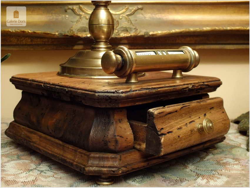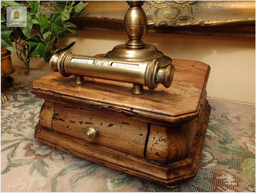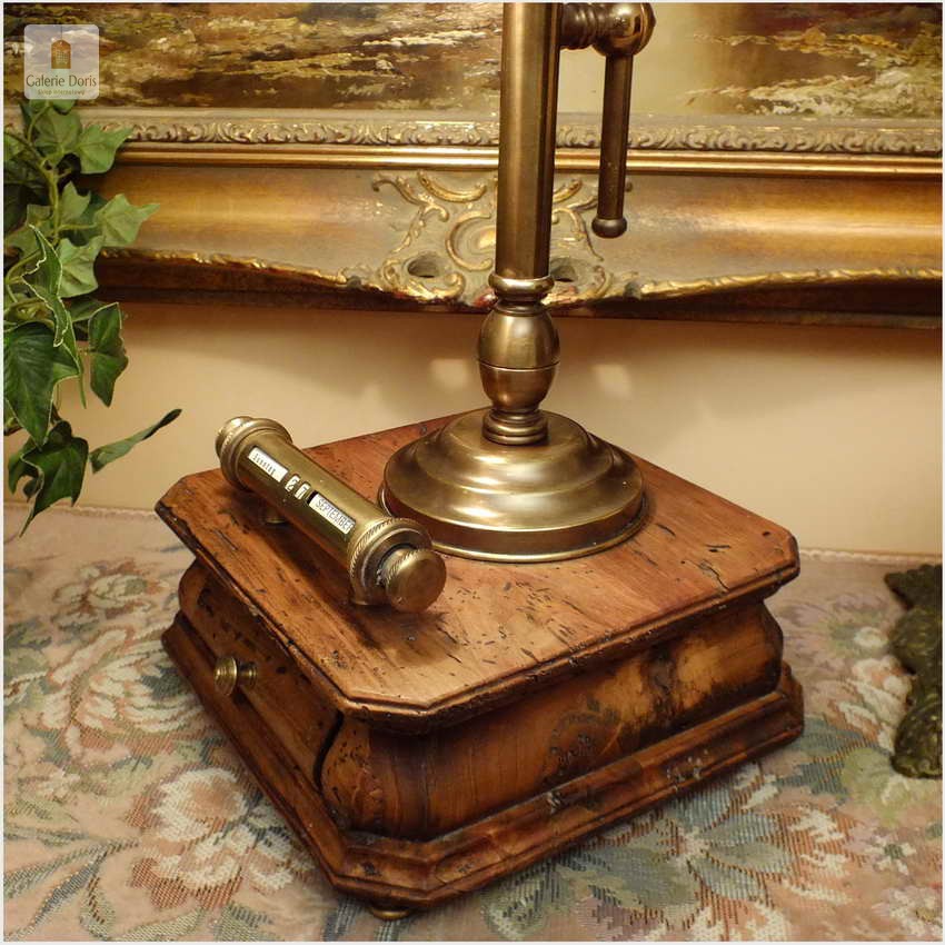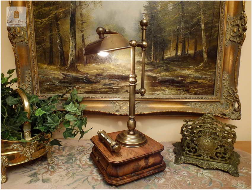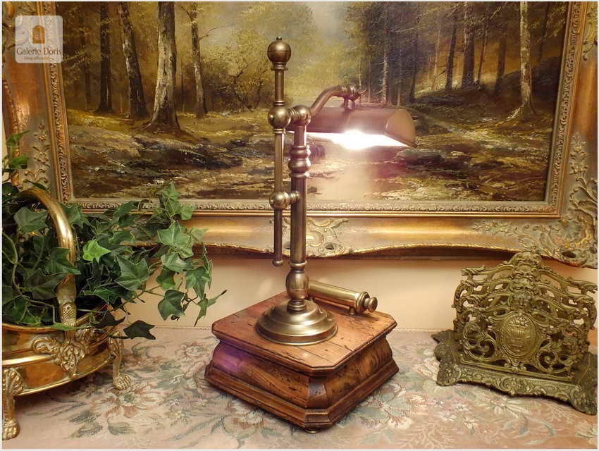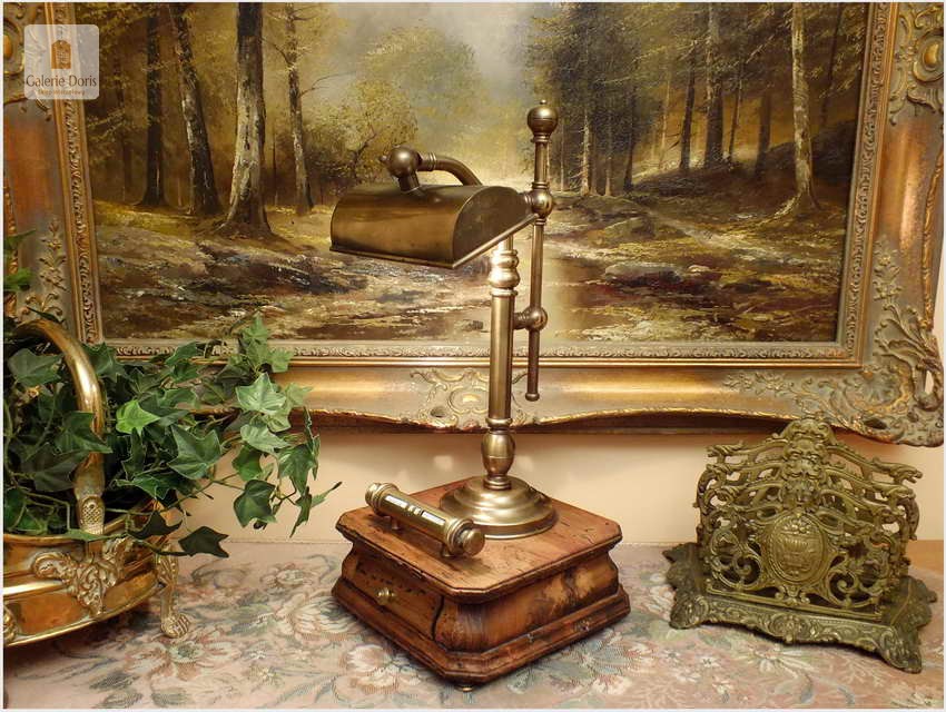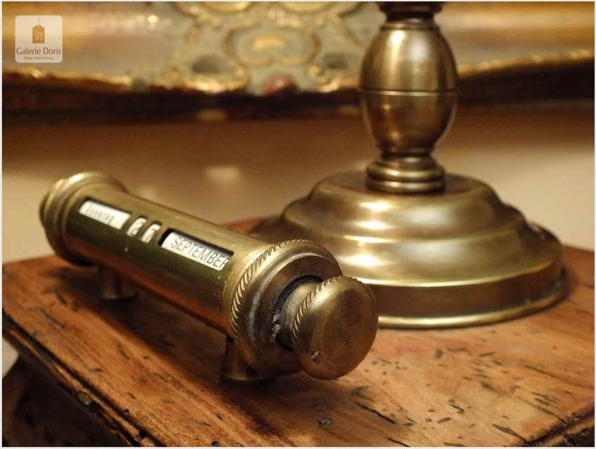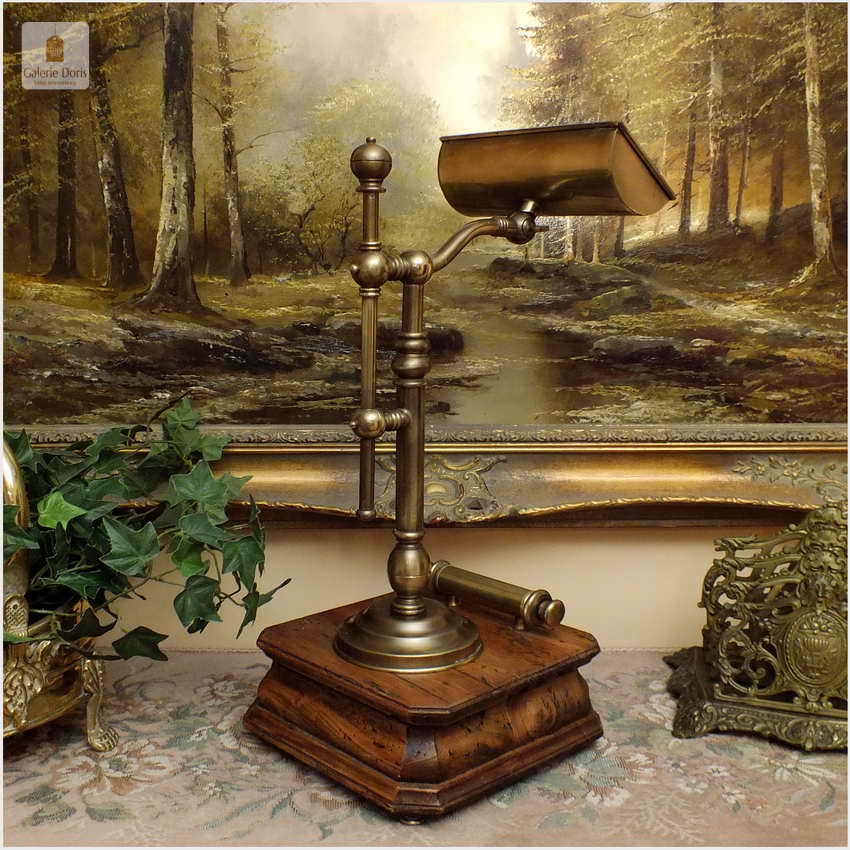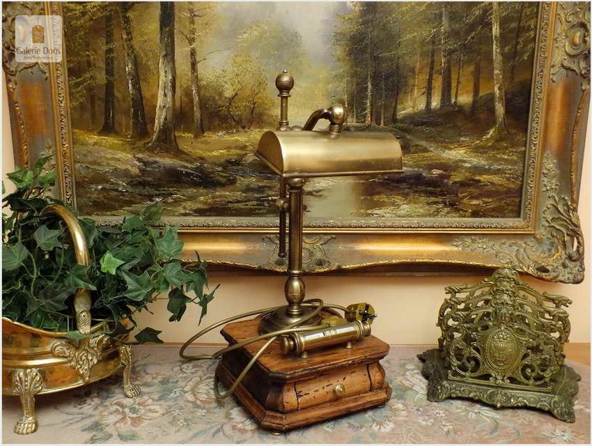 Polecamy sprawną mosiężną lampę bankierkę z kalendarzem. Podstawa stylizowana fabrycznie na starą, pamiętaj w 100% bez korników! Polecamy!