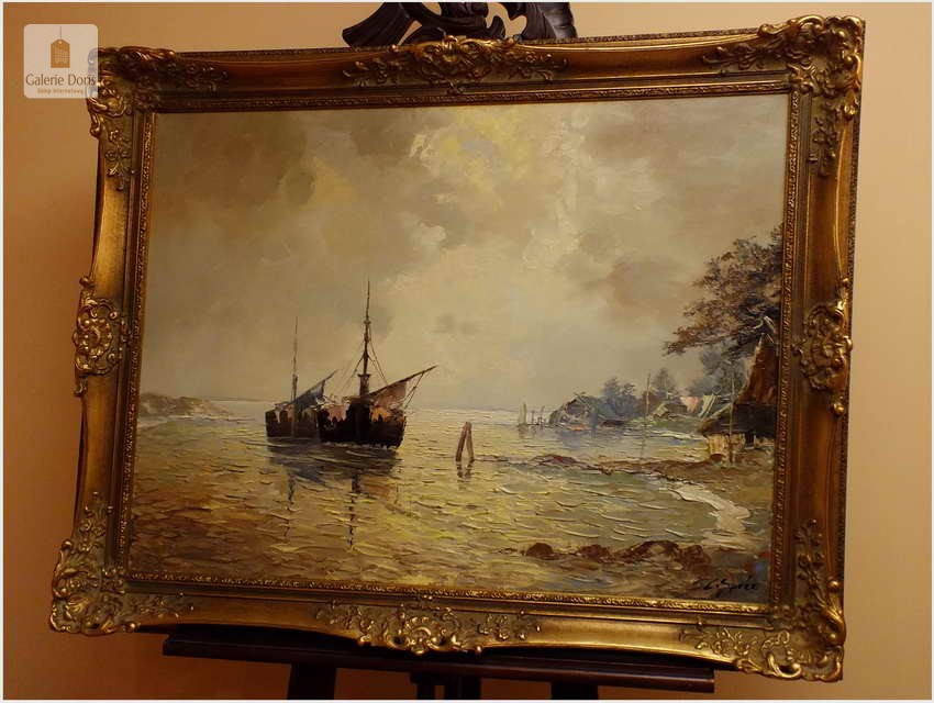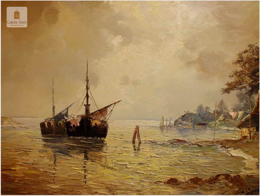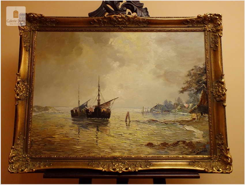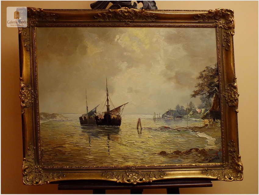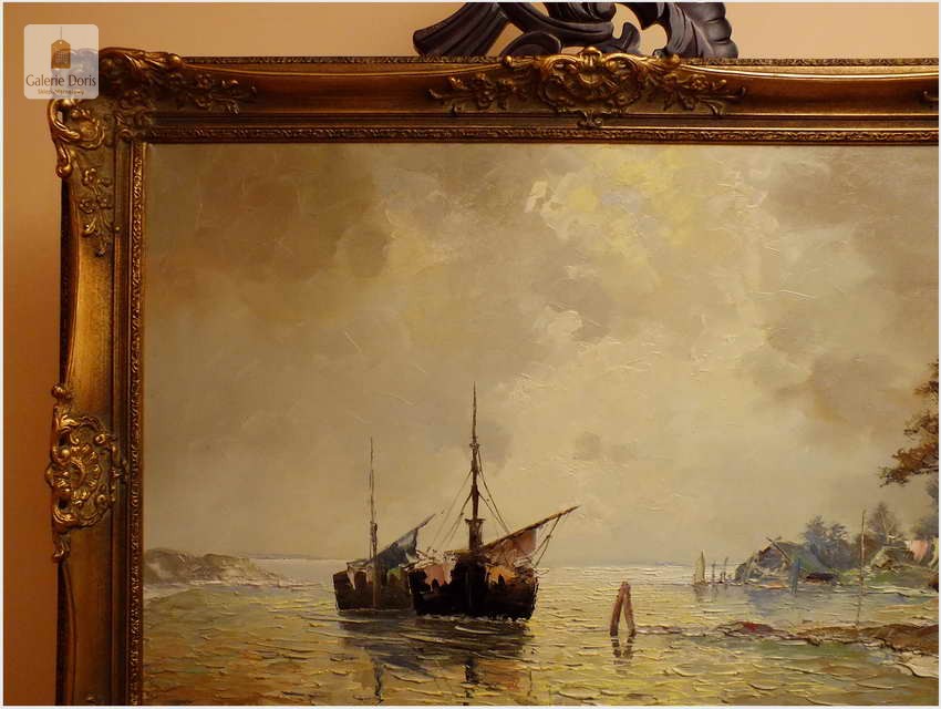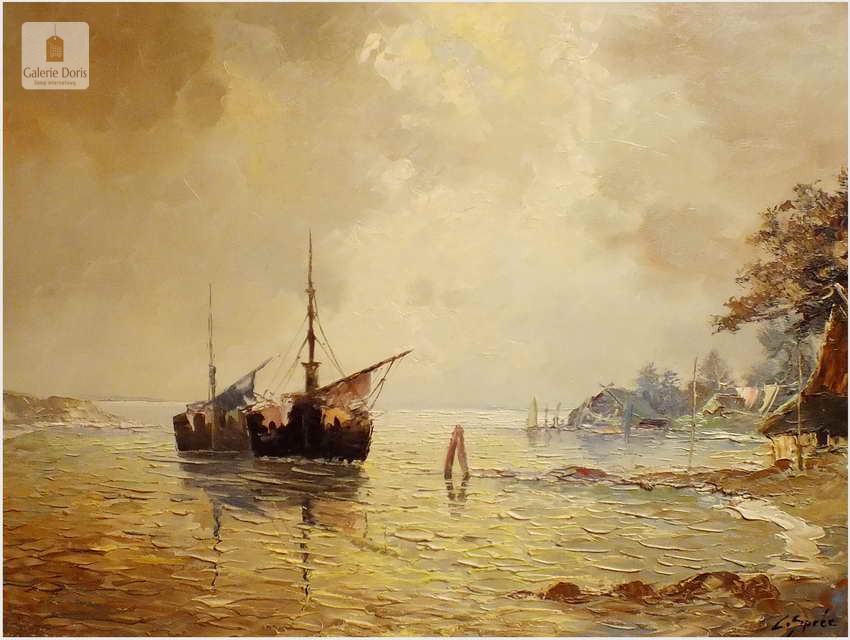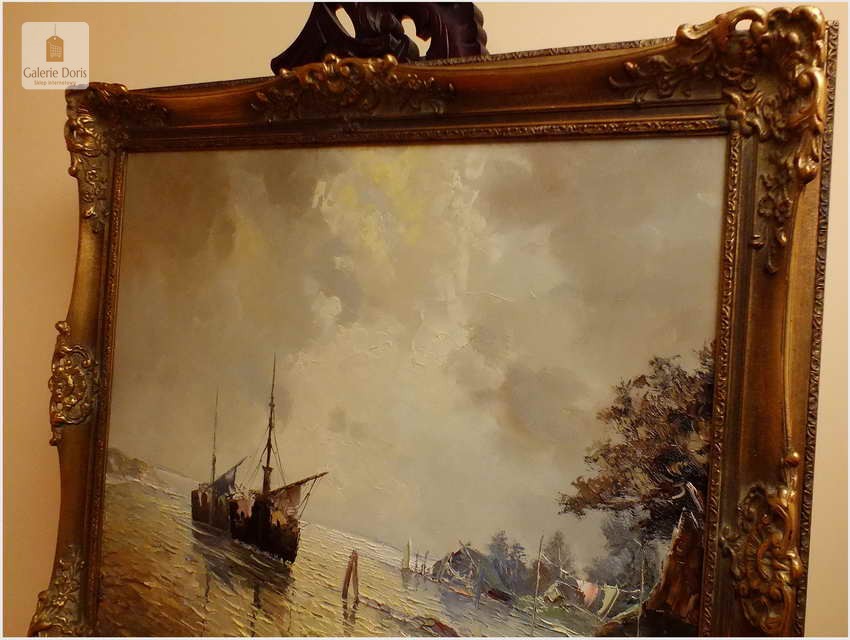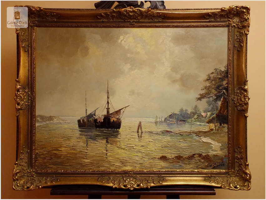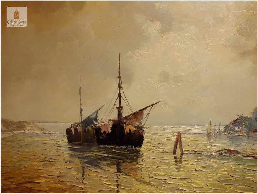 UNIKATOWY TEMAT! ŁODZIE ŻAGLOWE W ZATOCE - Carol SPREE ur.1907r