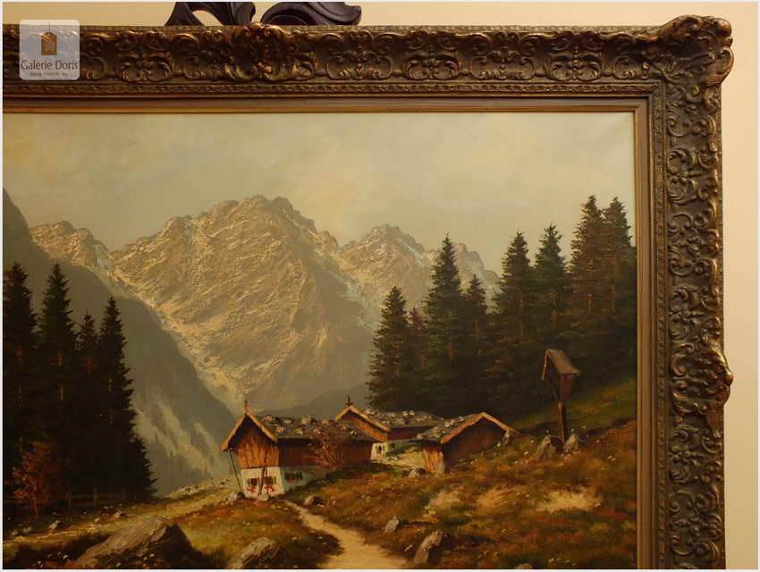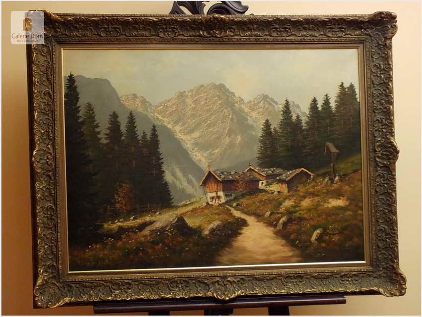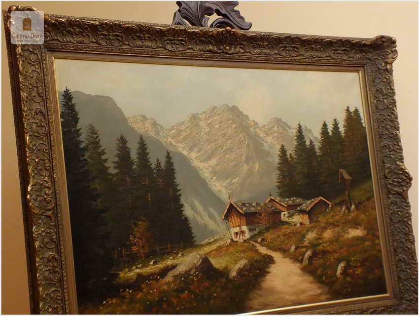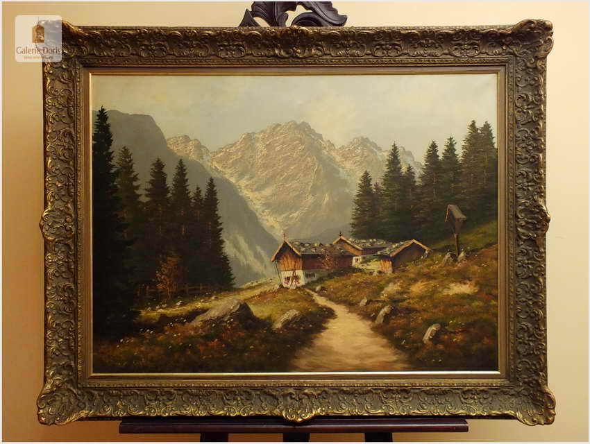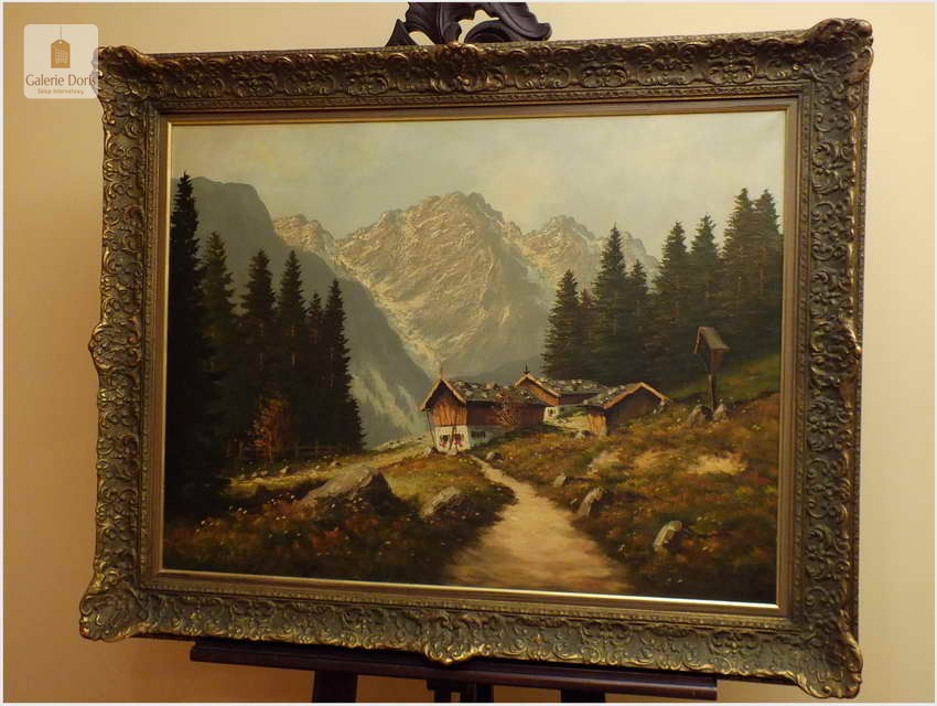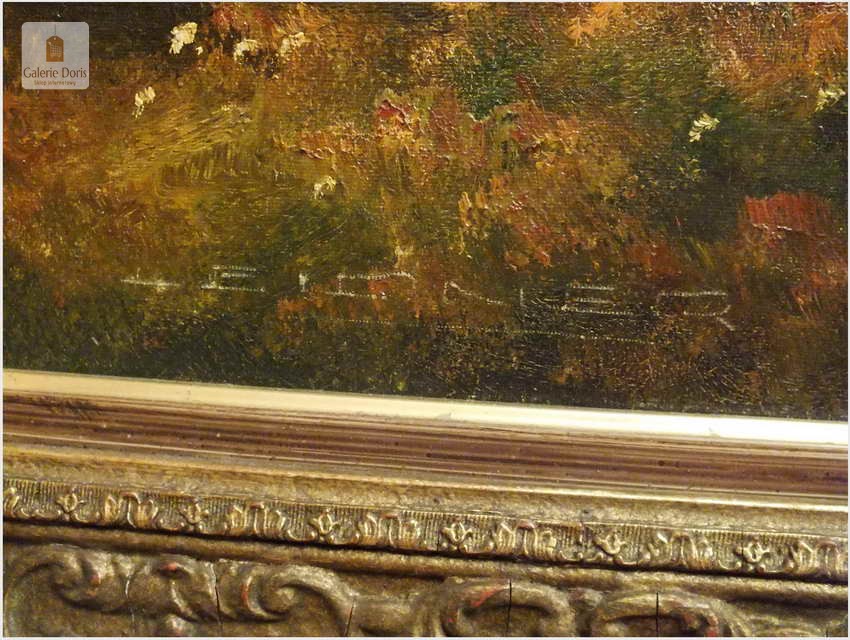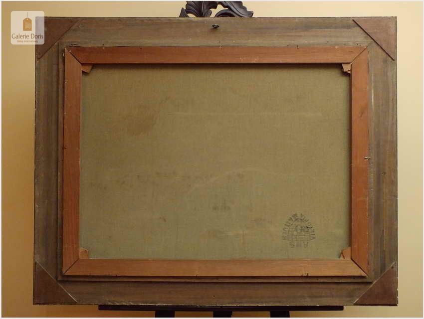Jego styl malarski wyróżnia się przede wszystkim zastosowaniem tematyki romantycznej, ciepłych subtelnie oddanych kolorów. Jego prace często są spotykane na europejskich aukcjach. Ten obraz jest jego bardzo dobrą pracą z późniejszych lat jego twórczości. Piękną dodatkową ozdobą jest bardzo bogata rama o konstrukcji drewnianej zdobiona sztukaterią w stanie bardzo dobrym. Całość prezentuje się wspaniale. Będzie z pewnością pięknym eksponatem w Państwa kolekcji, domu.