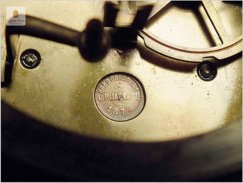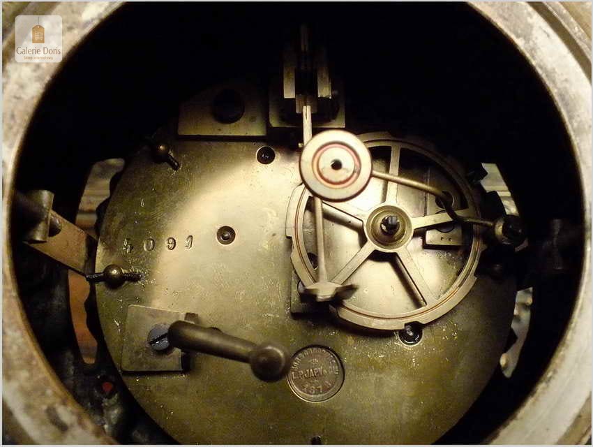 Oferowany zegar łącznie z dwoma świecznikami stanowi komplet. Wspaniałe uzupełnienie pałacowych wnętrz i wykwintnych salonów. Zegar to kwintesencja XIX w. Mechanizm po nakręceniu chodzi przez około 6 dni, grzebieniowy system bicia z wychwytem Grahama - wybija pełne oraz połówki godzin. Tarcza porcelanowa, w komplecie oczywiście kluczyk do nakręcania zegara. Całość jak na lata w bardzo dobrym stanie.
