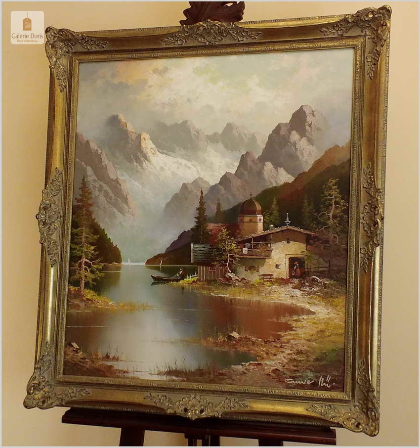 WYJĄTKOWY OBRAZ! BERGSEE MONTE BIVERA - GUSTAW WEISS/GUWE (80cmx70cm)