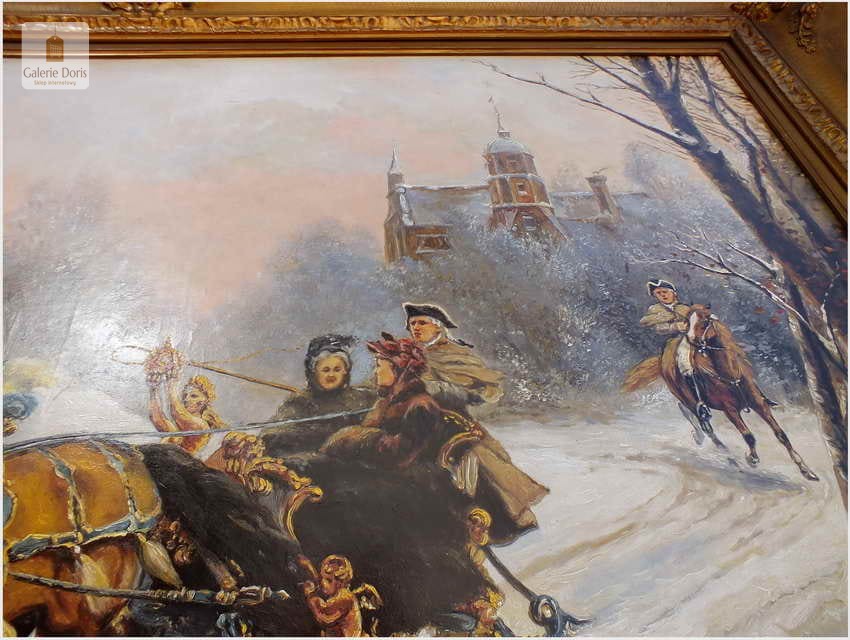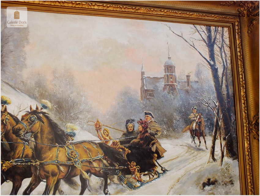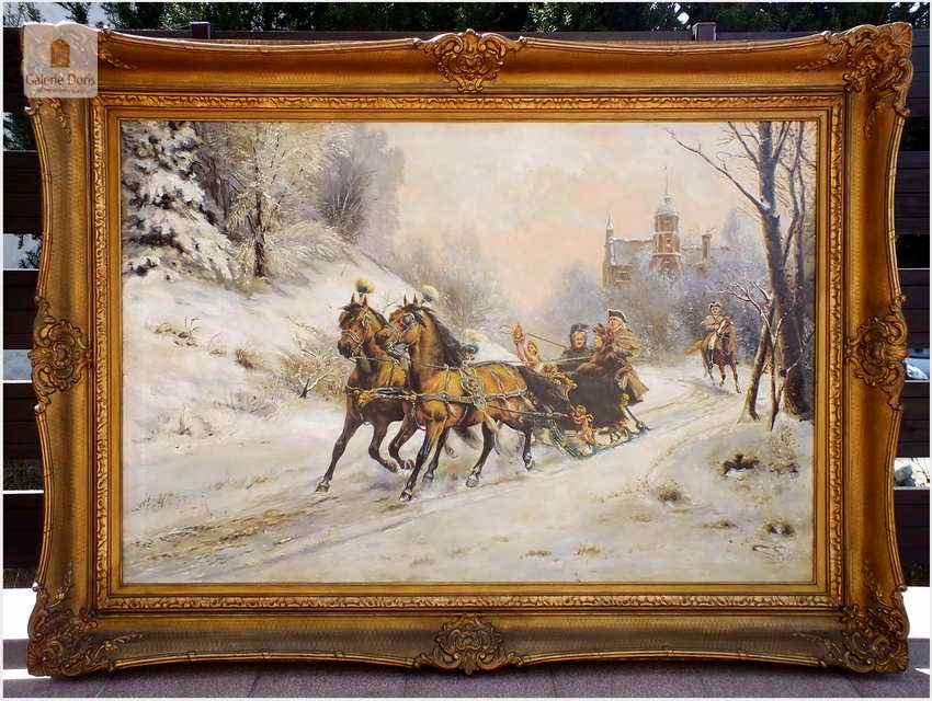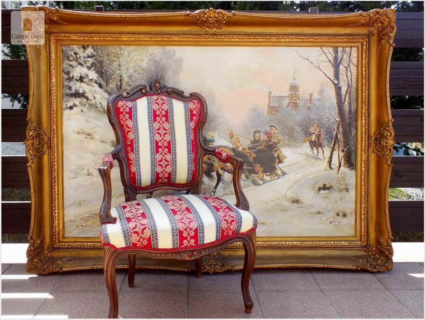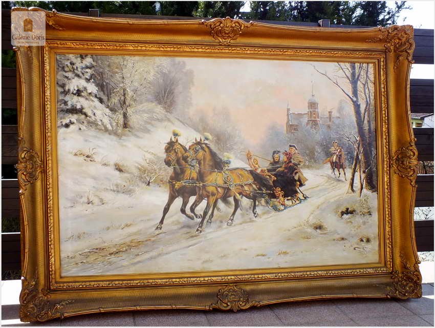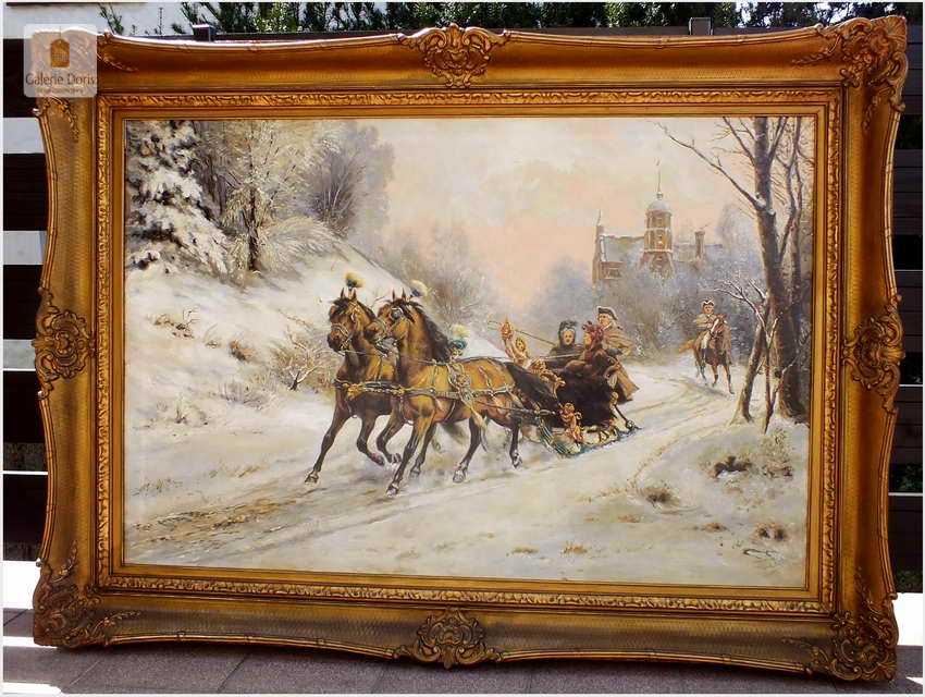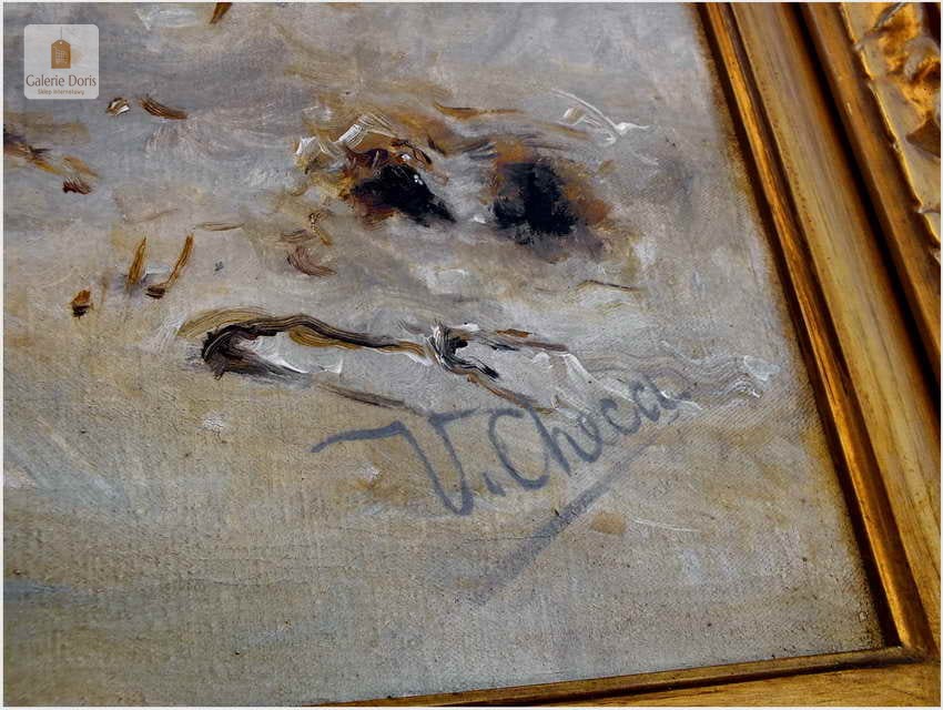 Przedstawiamy duży stary obraz olejny w pałacowej ramie. Z uwagi na rozmiary rekomendujemy odbiór osobisty. Rama obrazu i płótno bez uszkodzeń,(obraz bez ekspertyz) sygnowany l.d. Pamiętaj obraz bardzo dużych rozmiarów. Proponowany obraz z tej oferty to propozycja w szczególności dla pensjonatu, pałacyku czy zajazdu a na kancelarii doradczej, adwokackiej kończąc. Na prestiż pensjonatu, czy każdej kancelarii wpływają przede wszystkim jej zawodowe osiągnięcia, lecz nie należy zapominać o oprawie jako całości!. Obraz sygnowany w prawym dolnym rogu: U.Checa. Adekwatnie do sygnatury umieściliśmy biografię i przypisy malarza - Bardzo dekoracyjny obraz, Polecamy!