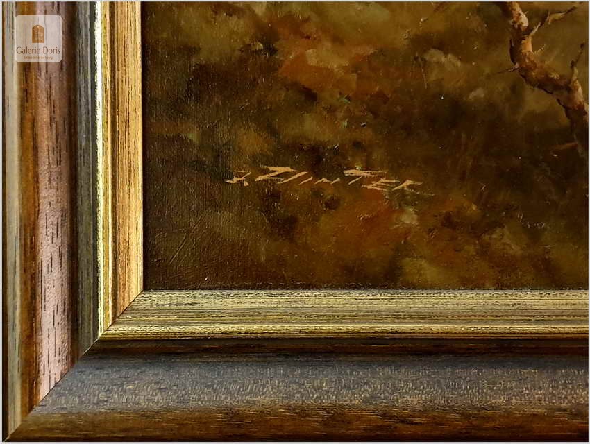 Oto przykład kolejnego dzieła tego artysty, oferowanego przez naszą galerię. Jest to autentyczny obraz olejny na płótnie; oprawiony w stylową przepiękną dębową ramę. Obrazy artysty cieszą się dużym powodzeniem i są pożądane na aukcjach sztuki, ze względu na perfekcyjne pociągnięcia pędzla i styl malarski oddający klimat 19 wiecznych obrazów.