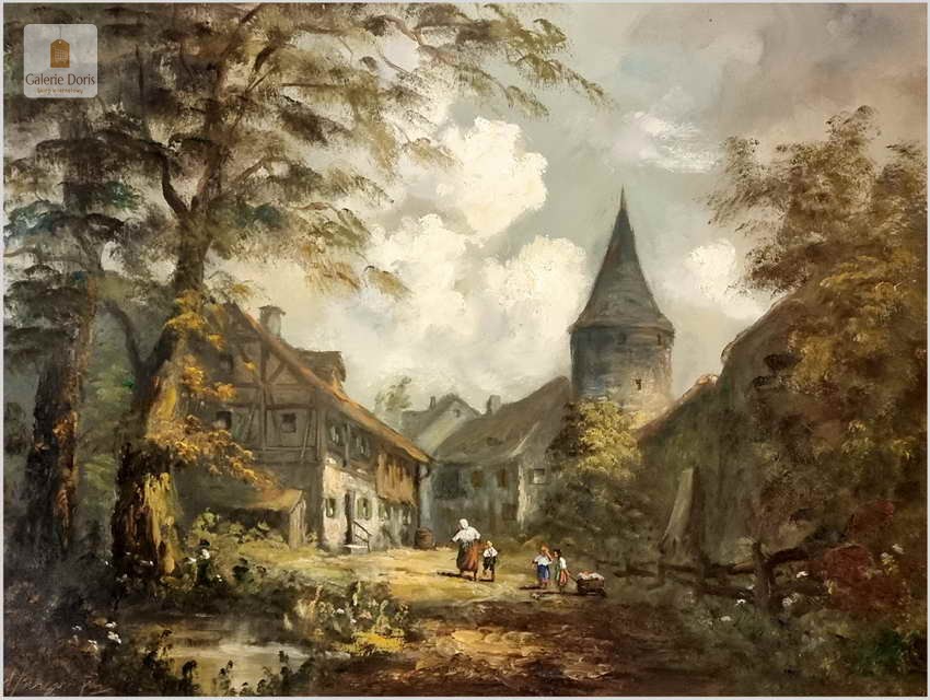 Wiejski krajobraz z bawiącymi się dziećmi - Heinrich Berger (1898-1977)
