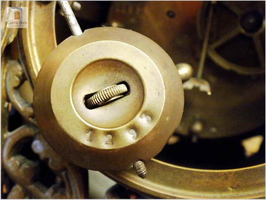 Oferowany zegar łącznie z dwoma kandelabrami stanowi wyjątkowy komplet. Wspaniałe uzupełnienie pałacowych wnętrz i wykwintnych salonów. Zegar to kwintesencja XIX w. Mechanizm po nakręceniu chodzi przez około 6 dni, grzebieniowy system bicia - wybija pełne oraz połówki godzin. Mechanizm oryginalny po przeglądzie, na prawidłowym chodzie. Tarcza duża porcelanowa, w komplecie oczywiście kluczyk do nakręcania zegara. Całość jak na lata w bardzo dobrym stanie. Kandelabry i jego ramiona na świece proste, a niedoskonałości widoczne tylko na zdjęciach.